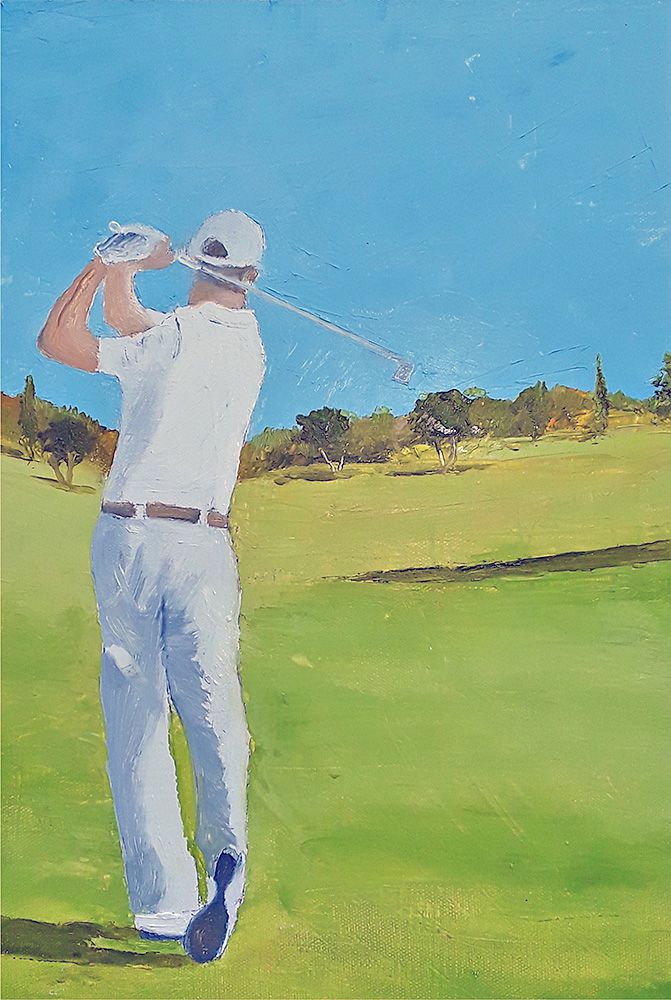 Le Golfeur est une peinture à l’huile réalisée au couteau sur toile par Jean-Marie Ferrer, artiste peintre en Provence, installé entre Fréjus et Saint-Raphaël.