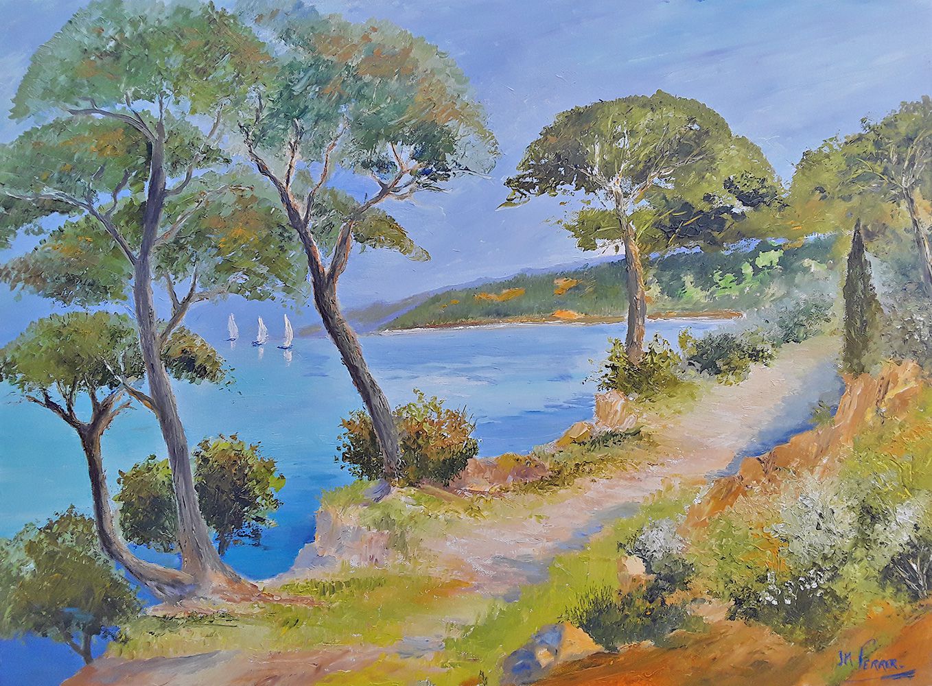 Peinture à l'huile au couteau: Sur le sentier des douaniers