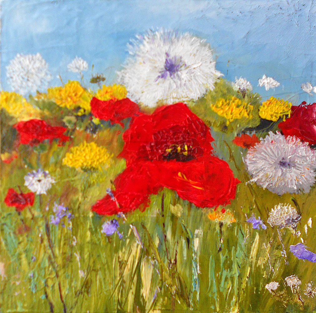 Peinture à l'huile au couteau sur toile - tableau petit format: Fleurs des champs