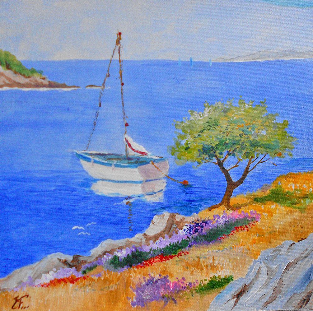 Peinture à l'huile au couteau sur toile carrées sans châssis: L'azur